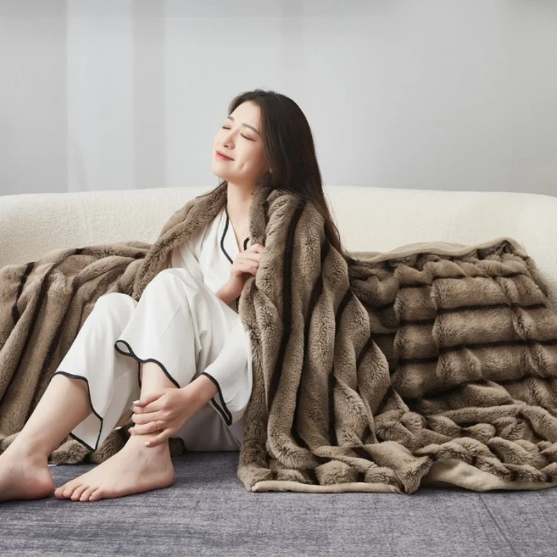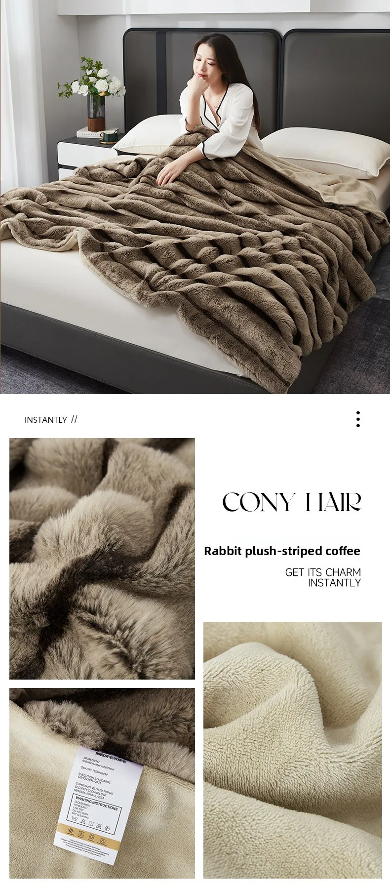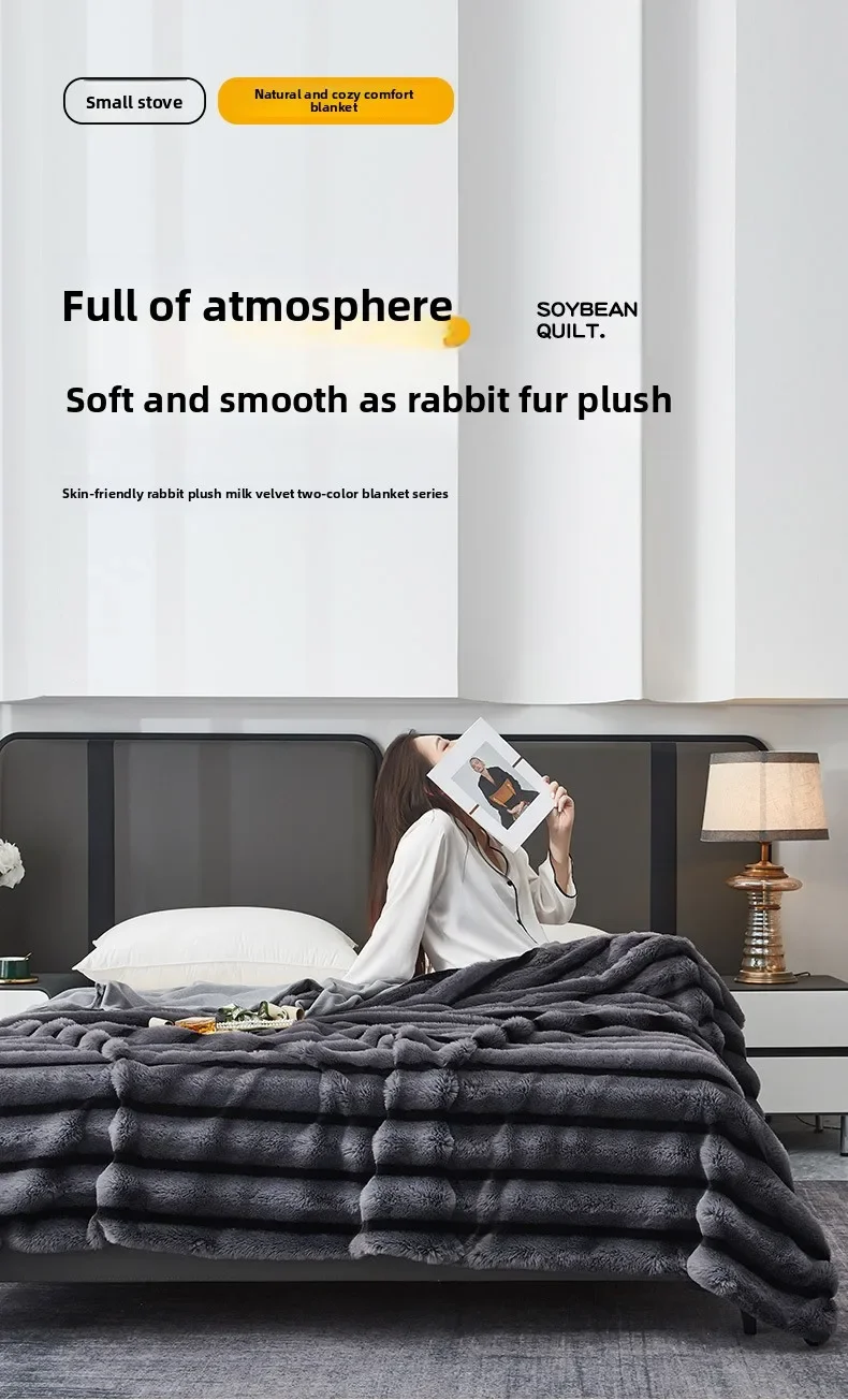 Thickened Rabbit Fur Melard Blanket Warm Sofa Blanket for Living Room And Bedroom Autumn Winter Decoration Soft Throw Blank
